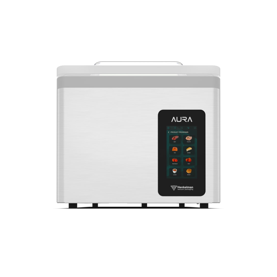 Effortlessly create perfectly vacuum-packed products with the advanced software of the Aura. Simply select the product or image on the Henkelman H-touch control panel and the Aura automatically enables (or disables) the correct functionalities. We call this intelligent form of vacuum-packing I-vac. With dozens of pre-set products, the Aura ensures that everyone can perfectly vacuum pack every product. Functions such as liquid control, marinating and multistep-vacuum are standard and fully integrated on the Aura.