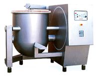 SIA vacuum mixer model AM-802 compose of a stainless steel cylindrical tank with semi-spherical base. Stainless steel paddles rotate within the chamber producing a double movement of the product, by crossing and alternative overlapping, that allows to KNEAD-MIX and to MASSAGE all kinds of pastes without any overworking, bruising neither harmful heating of the paste. All the components of the mix are perfectly distributed with no pockets of unmixed product left inside the tank in a short time. Remarkable qualities when compared with other mixers on the market. The created depression and the removal of the intermolecular air by the vacuum action lets an increase of the density, a quick albumin obtaining, a de-aeration of the paste, resulting in improved quality, texture, colour, a reduction in oxidisation related problems, a save in weight, obtaining with this a big increase in the self-life of the product. Different paddles can be supplied for both mixing and massaging of either large pieces of meat and boned hams. Materials The framework and all the components in contact with the product are manufactured in stainless steel throughout. Tank cover is made in clear acrylic. Operation A high power motor gearbox assembly drives the paddles. If required a variable speed gearbox can be fitted. The selection of the working options is very simple. Vacuum regulator Vacuum can be adjusted from 0 to a higher vacuum. Control board The machines are controlled by a control panel with TIMER and INSIDE PROGRAMMER of working cycle that allows the selection of the following parameters: – Selection of total time of process (outside selector). – Set the paddle turning time in each direction and also the speed in each direction. – Work with vacuum action, without vacuum or alternately (lung effect). Hygiene The mixer is supplied with an exclusive SIA system to remove both shaft and paddles, ensuring complete hygiene and avoiding potential faults, resulting in no fermentations or bad smells of the product. Usual bearing and oil seals faults in mixers are also prevented with this system. Applications Sausages: Minced meat mixing with additives, salamis, big sausages (chorizo)…etc, massaged of big meat pieces, york bar, boiled ham…etc. All kind of pork butcher´s: sausage, puddings, pâtés, fresh sausage…etc. Pre-cooked food: pâtés, mix, sauces, raw salads, cooked salads…etc. Lifter Mixer model AM-802 can be supplied with an incorporated hydraulic lifter for standard wagons of 200 litres.
